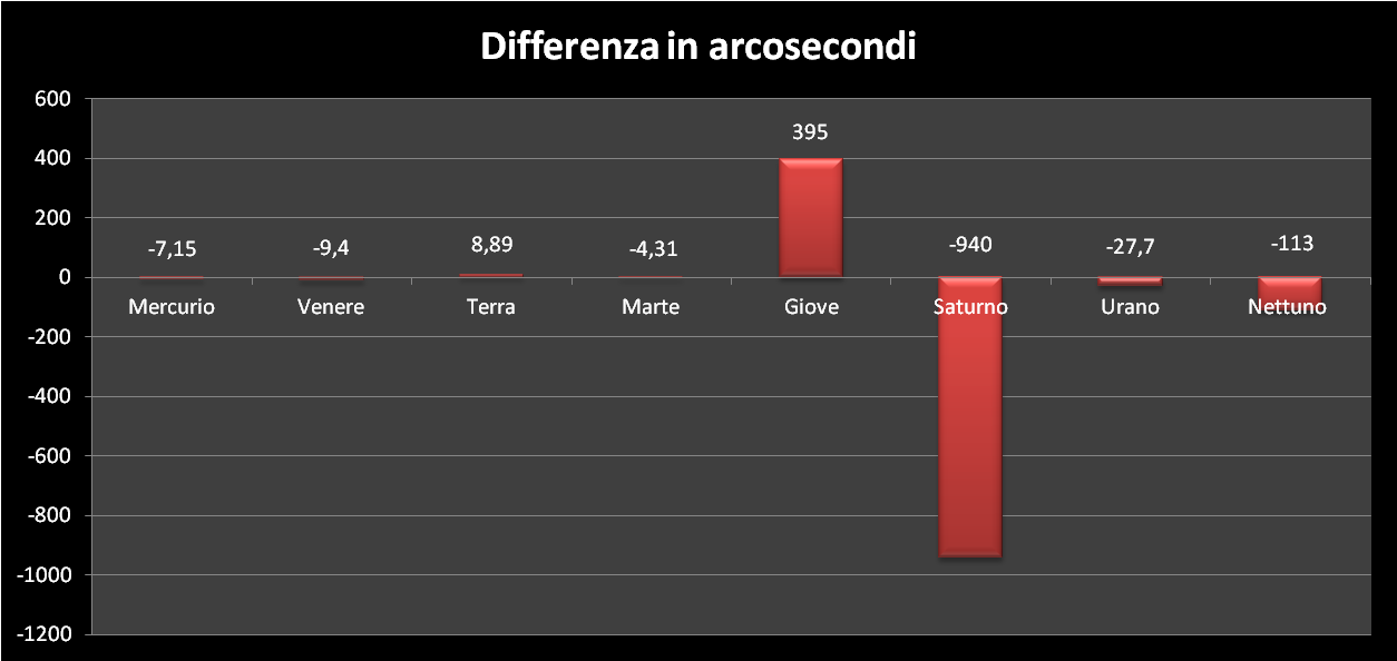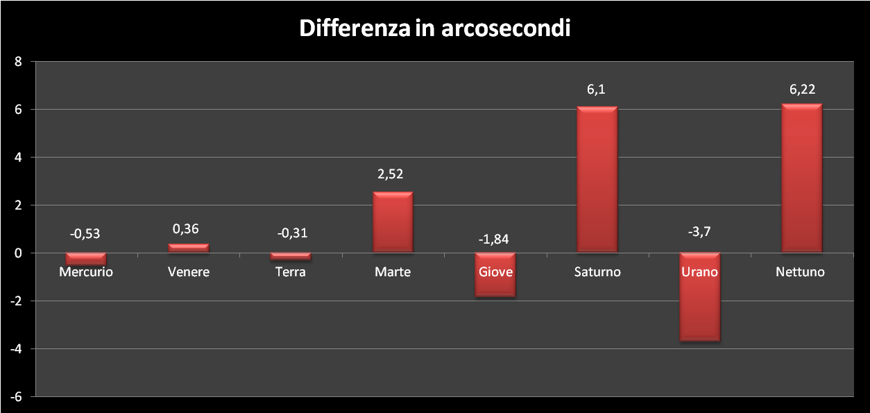 | Differenze in arcosecondi tra i valori del programma Solex