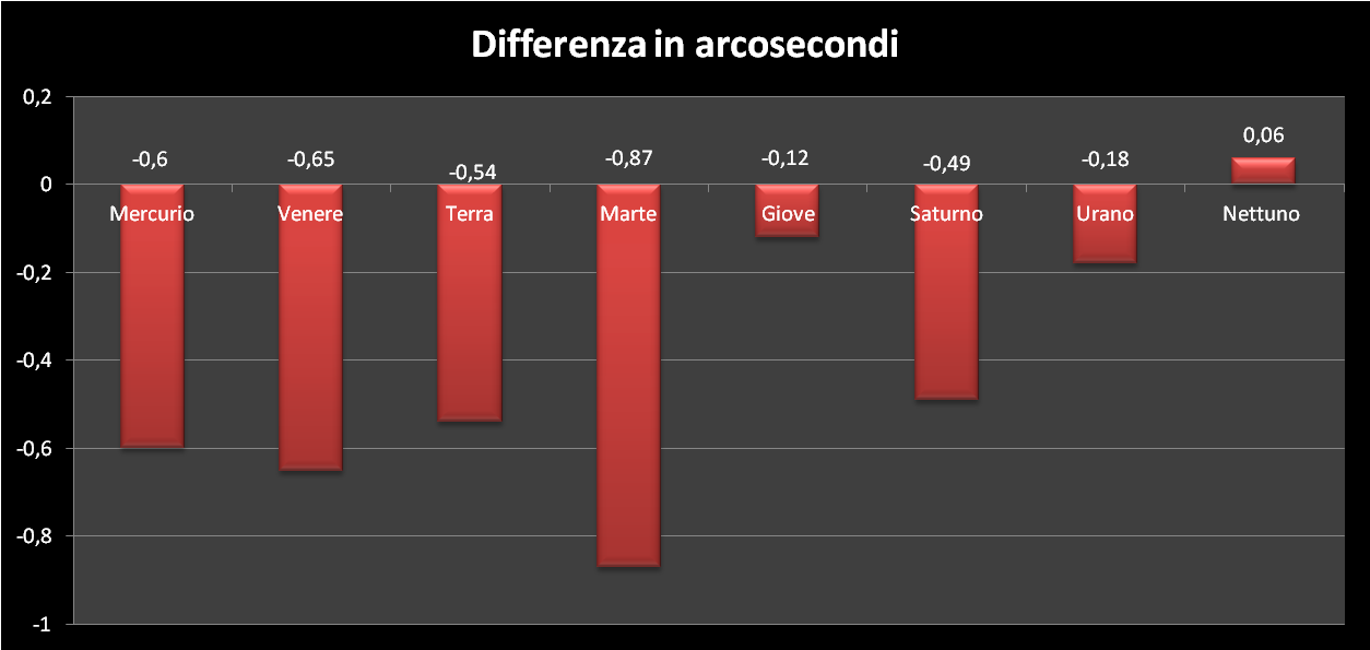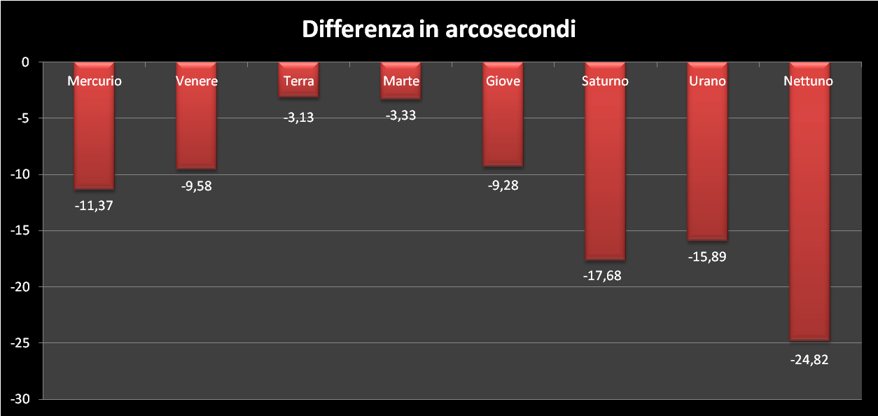 | Differenze in arcosecondi tra i valori del programma Solex