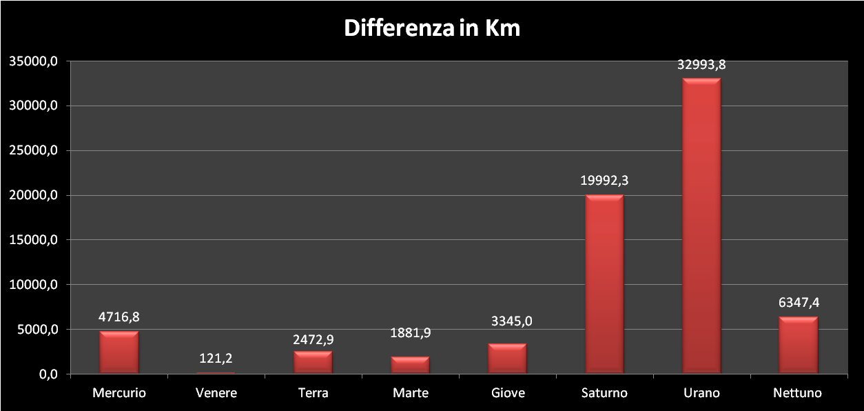 | Pianeta | Mercurio | Venere | Terra | Marte | Giove | Saturno | Urano | Nettuno | ||